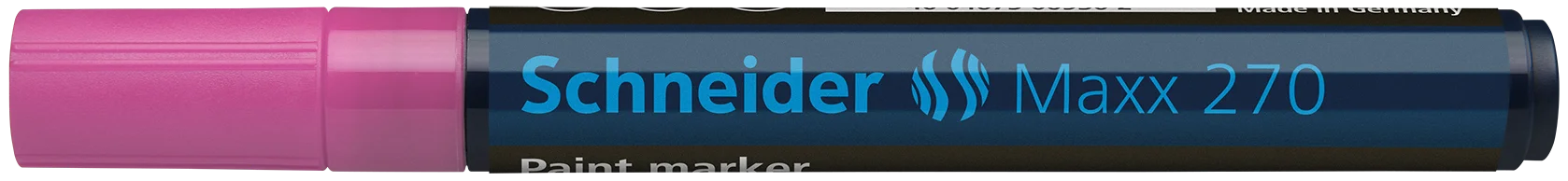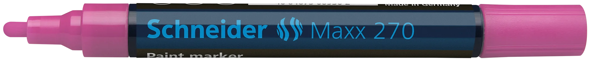 Lakmarker met een ronde punt voor een krachtige lijnbreedte van 1 - 3 mm. Schrijfkleur roze. Ideaal voor het markeren en decoreren van ruwe en gladde oppervlakken, zoals papier, plastic, glas, keramiek, metaal, leer, rubber, etc. De markering is sterk dekkend, goed hechtend en bestand tegen slijtage op bijna alle materialen, lichtecht, water- en weerbestendig, bestand tegen vele etstechnieken en wasvoorschriften en hittebestendig tot 300 °C. De inkt wordt door een ventiel geleid en is vrij van Tolueen en Xyleen. Per stuk in een krimp verpakt, vervangbare schrijfpunt.