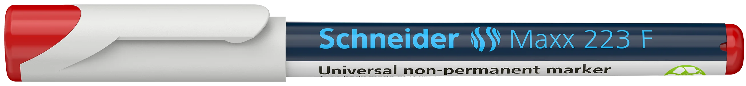 Non-permanente universele marker met schrijfbreedte Fine (F) ca. 0,7 mm. Schrijfkleur rood. Voor het beschrijven van transparante folie (OHP), papier, kunststof, glas, metaal en bijna alle andere materialen. De kleuren zijn intensief, sneldrogend, watervast en lichtbestendig. De Cap-off-inkt droogt niet uit, ook wanneer de marker 2-3 dagen zonder dop blijft liggen. De marker is nagenoeg reukloos en zonder Tolueen en Xyleen. Dunne potloodmodel stift met praktische dop met clip. Milieuvriendelijk en grondstofbesparende houder gemaakt van 92 % gerecycled plastic.