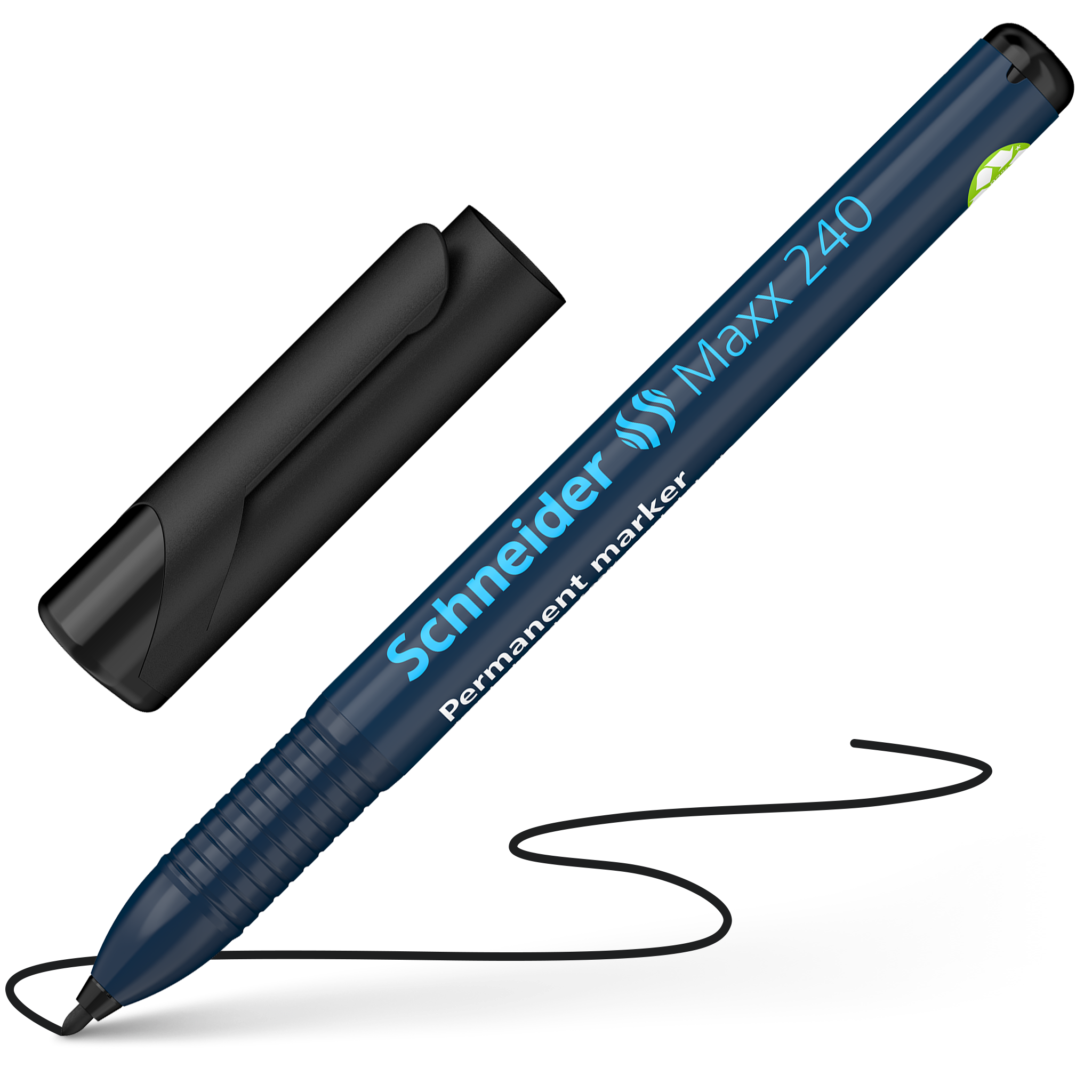Marker permanentny z okragla koncówka, grubosc linii: 1-2 mm. Kolor pisma: czarny. Do pisania na kartonie, papierze, tworzywie, szkle, metalu, drewnie i na wiekszosci innych materialów. Przyjazna dla srodowiska obudowa wykonana w 92% z recyklingowanego plastiku. Pismo szybko schnie, jest wodo- i swiatloodporne. System „cap off” zapobiega wysychaniu nawet gdy pozostanie nie zamkniety przez 2-3 dni. Jest prawie bezwonny i nie zawiera toluenu ani ksylenu. Smukly model kieszonkowy z praktyczna skuwka z klipem.