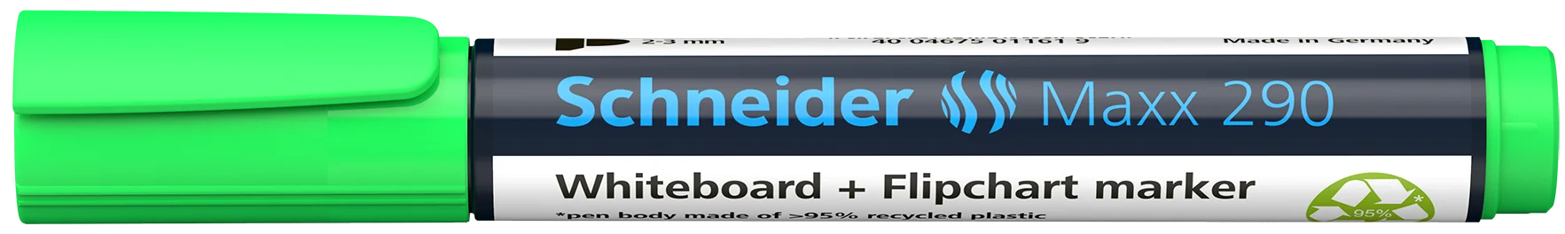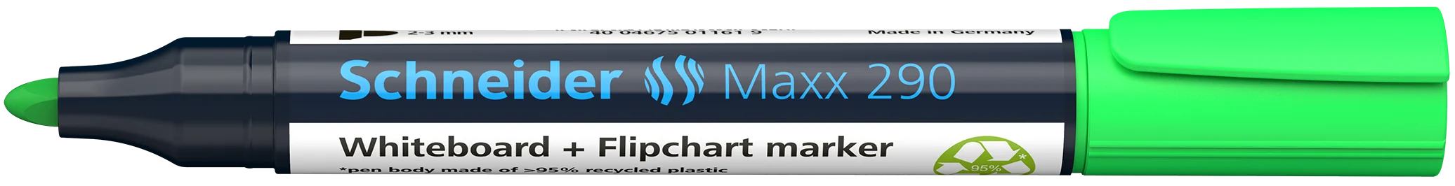 · Combined marker for whiteboards and flipcharts, writing colour light green· Bullet tip, line width 2-3 mm