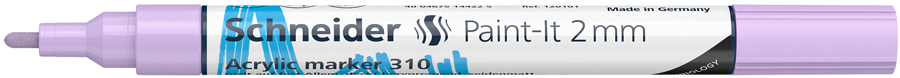 Acrylic marker 2 mm for creative work. Writing colour pastel purple. The right tool for any of your projects. High coverage, quick-drying and high colour brilliance. The optimised ink is suitable for almost any substrate: wood, metal, paper, cardboard, stone, etc. The water-based and odourless ink is perfectly controlled by a valve, to suit your needs.
