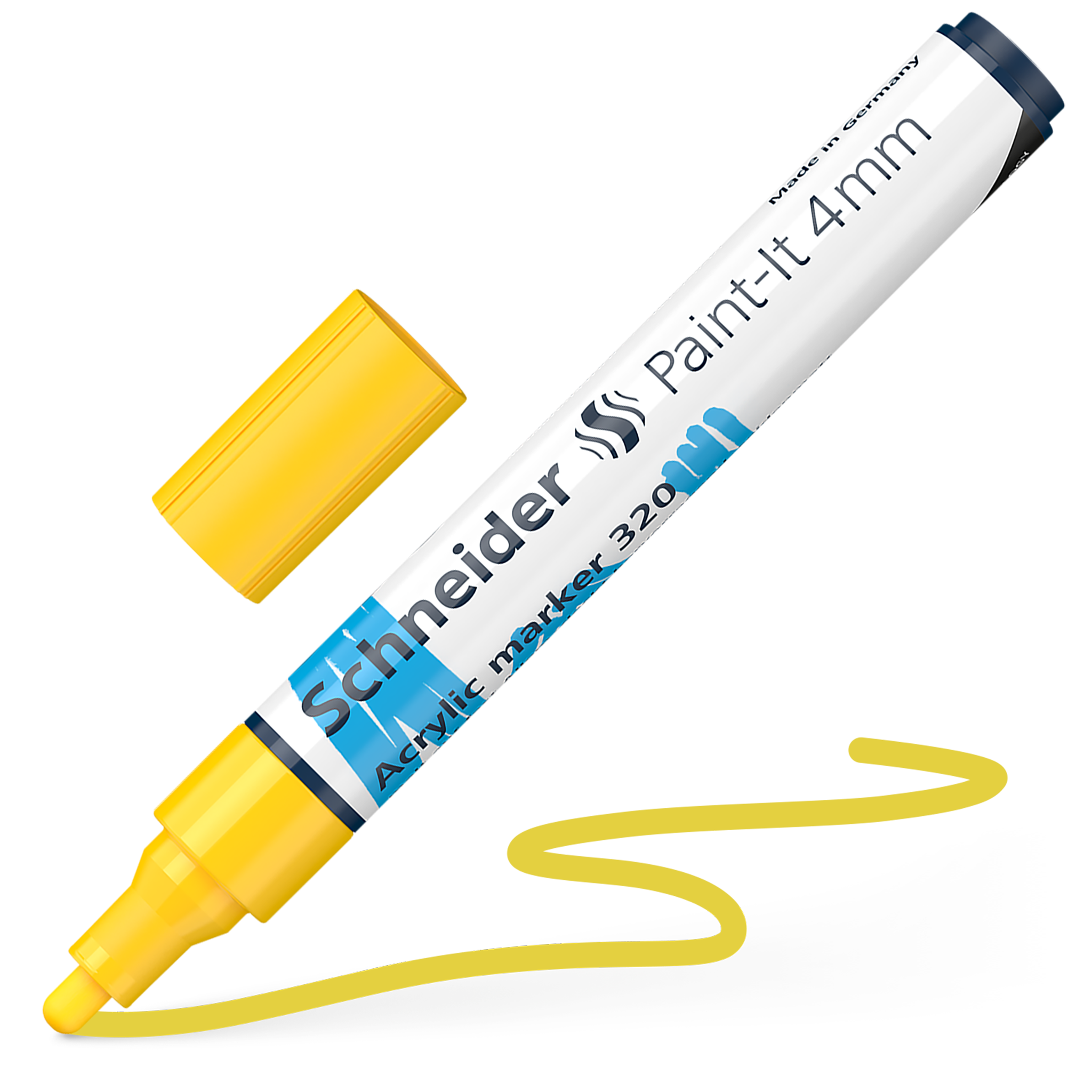 Acrylic marker 4 mm for creative work. Writing colour yellow. The right tool for any of your projects. High coverage, quick-drying and high colour brilliance. The optimised ink is suitable for almost any substrate: wood, metal, paper, cardboard, stone, etc. The water-based and odourless ink is perfectly controlled by a valve, to suit your needs.
