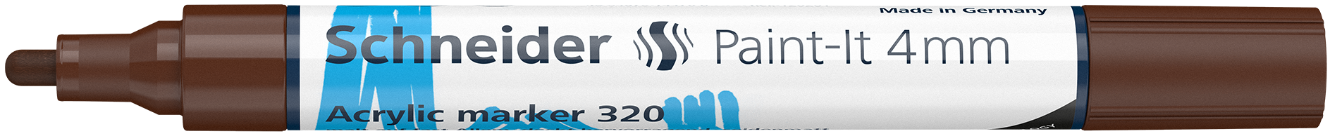Acrylic marker 4 mm for creative work. Writing colour brown. The right tool for any of your projects. High coverage, quick-drying and high colour brilliance. The optimised ink is suitable for almost any substrate: wood, metal, paper, cardboard, stone, etc. The water-based and odourless ink is perfectly controlled by a valve, to suit your needs.