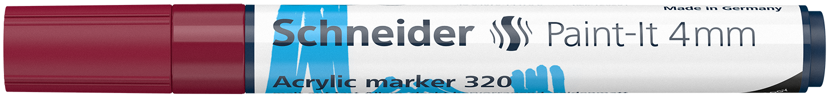 Acrylic marker 4 mm for creative work. Writing colour burgundy. The right tool for any of your projects. High coverage, quick-drying and high colour brilliance. The optimised ink is suitable for almost any substrate: wood, metal, paper, cardboard, stone, etc. The water-based and odourless ink is perfectly controlled by a valve, to suit your needs.