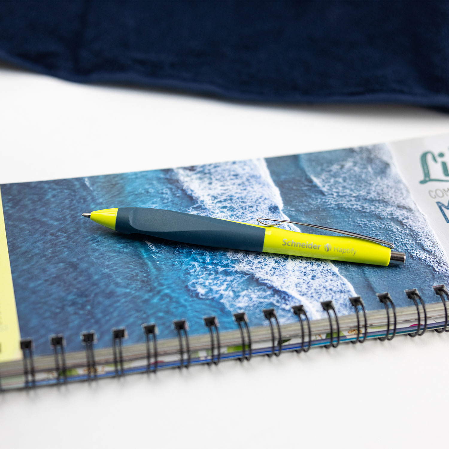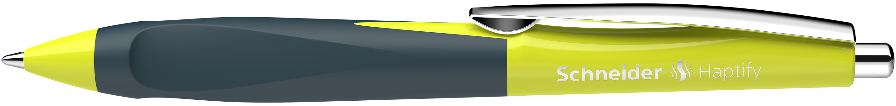 Ballpoint pen with ergonomically rubberised three-sized grip for ideal positioning in the hand. Replaceable metal refill Express 775 Medium (M) for extraordinarily easy and gliding writing. Barrel colour yellow/deep ocean, writing colour blue, waterproof according to ink standard ISO 12757-2. The wear-resistant stainless steel tip guarantees that the large ink supply can be fully used and does not smear. The Haptify has a strong metal clip and, thanks to the clever Plug+Play system, can use a variety of refill formats.