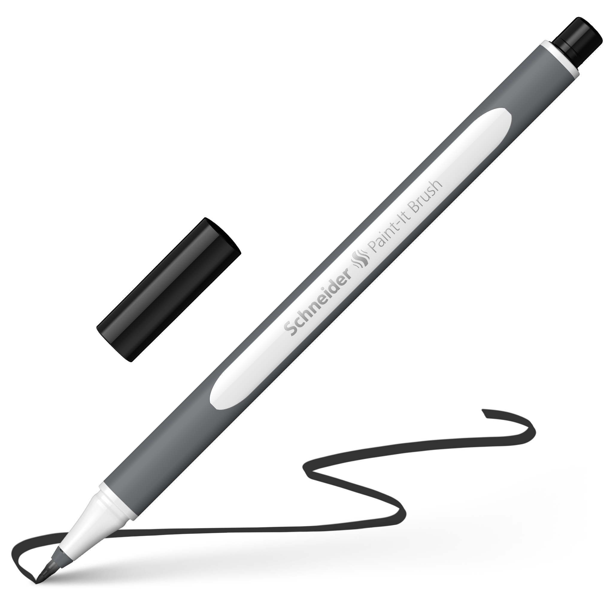 Brushpen with flexible brush tip for creative applications such as hand lettering, colouring, sketch notes and many others. Pen body made of 88 % bio-based plastic. Awarded with the world's best-known eco-label \"Blue Angel\" for particularly resource-saving and environmentally friendly production. The flexible premium brush tip makes it easy to change the line width. Thanks to the plastic encased tip, the Paint-It Brush is particularly durable, as this prevents the tip from bending undesirably. Ink colour: black. This makes it ideal for smaller fonts and motifs such as greeting and invitation cards, as well as letters and greetings. Low-odour, water-based, extremely colour-intensive and luminous ink, also ideal for watercolour and blending effects. The ink is quick-drying and therefore also perfectly suitable for right- and left-handers.