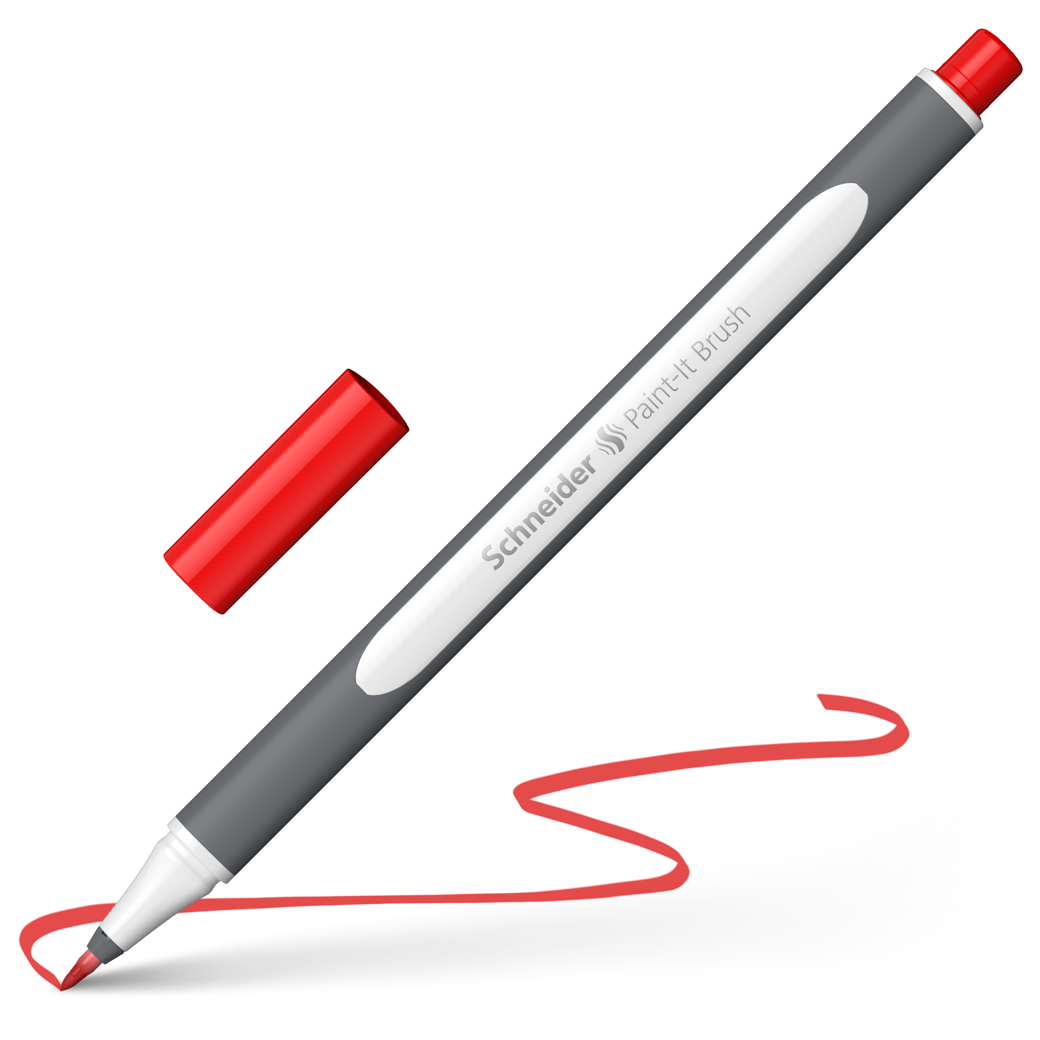 Brushpen with flexible brush tip for creative applications such as hand lettering, colouring, sketch notes and many others. Pen body made of 88 % bio-based plastic. Awarded with the world's best-known eco-label \"Blue Angel\" for particularly resource-saving and environmentally friendly production. The flexible premium brush tip makes it easy to change the line width. Thanks to the plastic encased tip, the Paint-It Brush is particularly durable, as this prevents the tip from bending undesirably. Ink colour: red. This makes it ideal for smaller fonts and motifs such as greeting and invitation cards, as well as letters and greetings. Low-odour, water-based, extremely colour-intensive and luminous ink, also ideal for watercolour and blending effects. The ink is quick-drying and therefore also perfectly suitable for right- and left-handers.