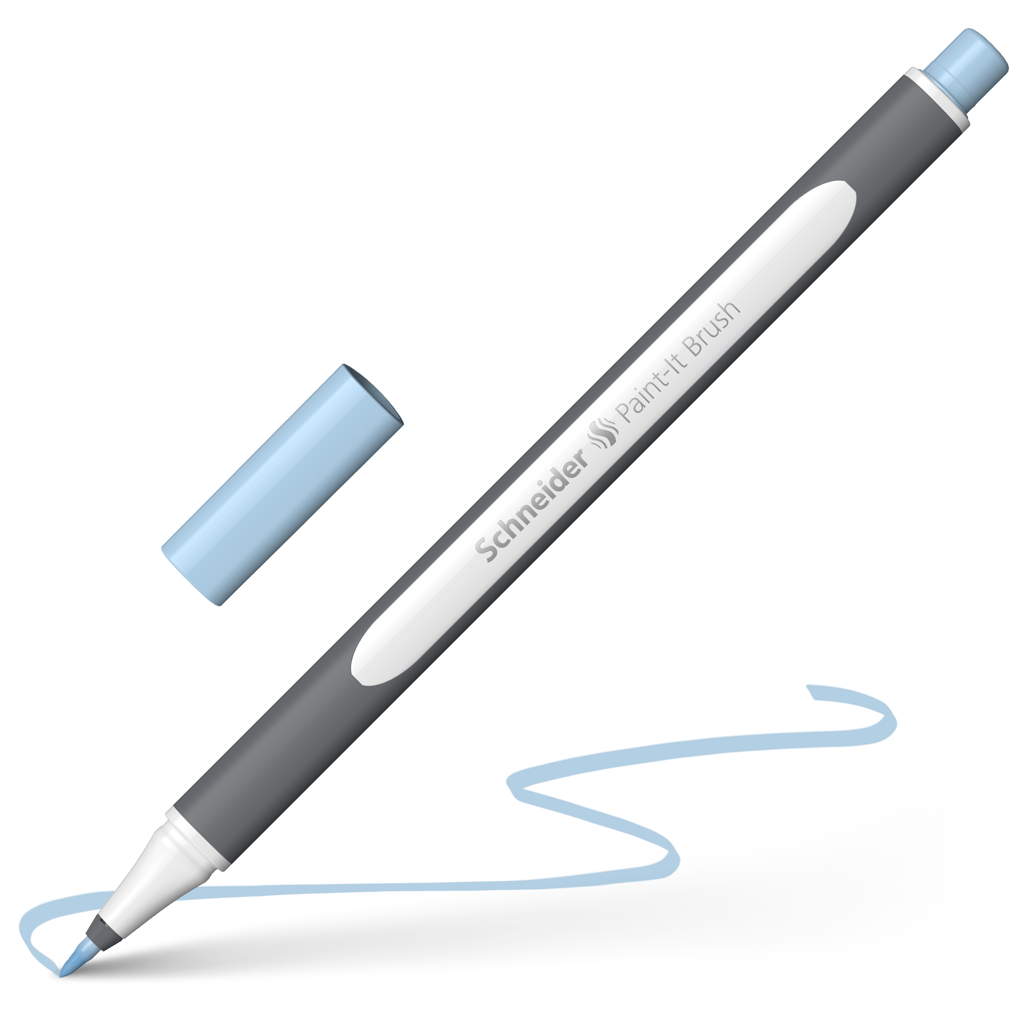 Brushpen with flexible brush tip for creative applications such as hand lettering, colouring, sketch notes and many others. Pen body made of 88 % bio-based plastic. Awarded with the world's best-known eco-label \"Blue Angel\" for particularly resource-saving and environmentally friendly production. The flexible premium brush tip makes it easy to change the line width. Thanks to the plastic encased tip, the Paint-It Brush is particularly durable, as this prevents the tip from bending undesirably. Ink colour: blue pastel. This makes it ideal for smaller fonts and motifs such as greeting and invitation cards, as well as letters and greetings. Low-odour, water-based, extremely colour-intensive and luminous ink, also ideal for watercolour and blending effects. The ink is quick-drying and therefore also perfectly suitable for right- and left-handers.