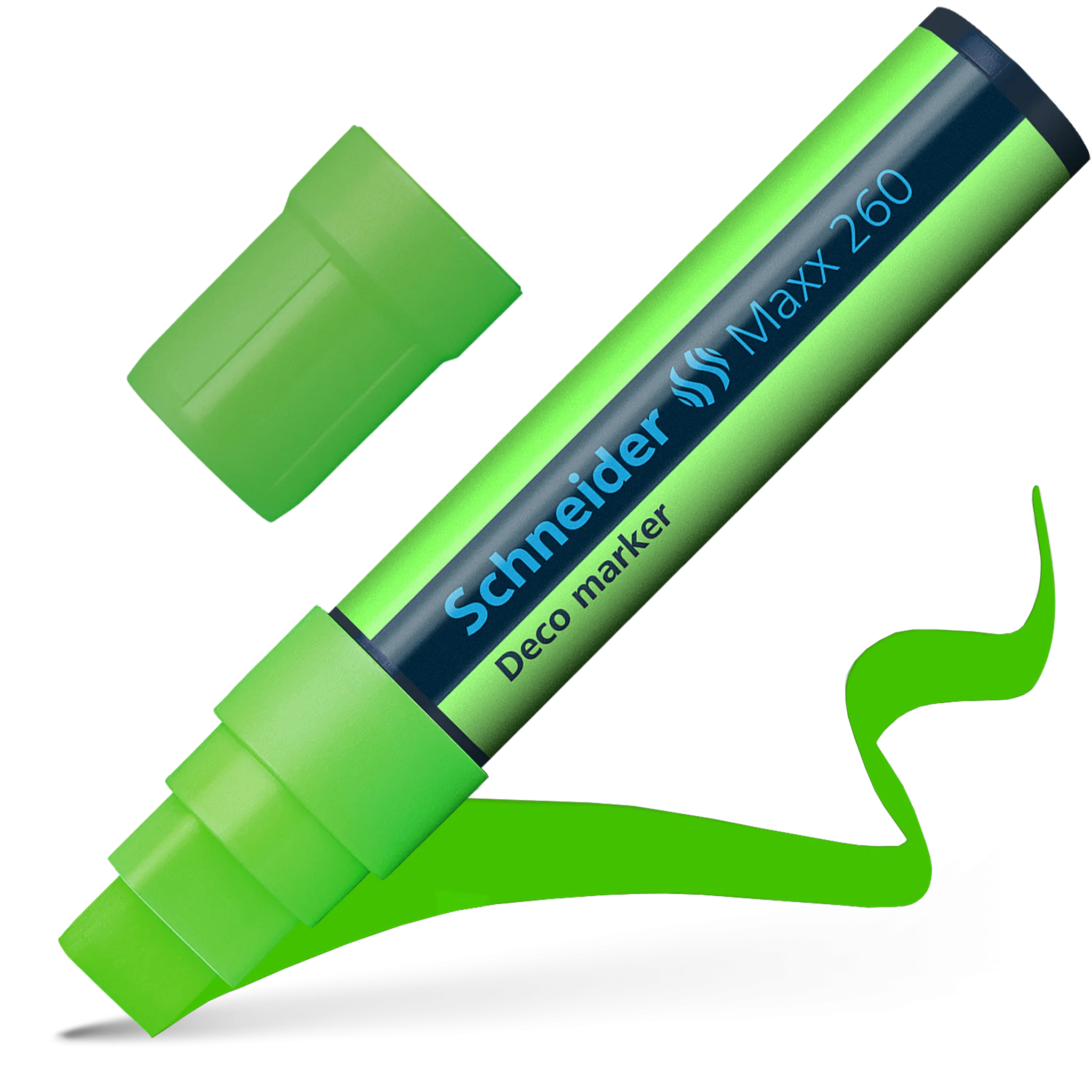 · Chalk marker with block tip 5+15 mm, writing colour light green· For opaque designs on windows and other closed surfaces.