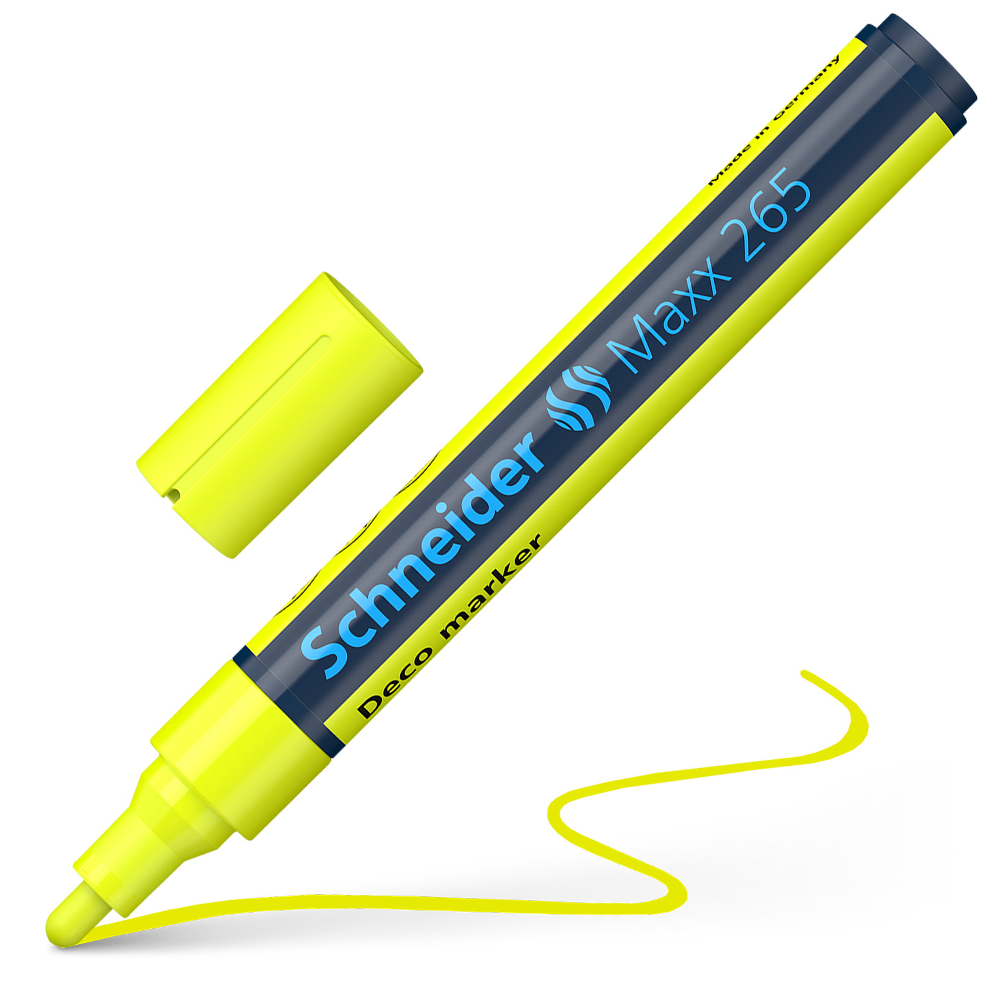 · Chalk marker with bullet tip 2-3 mm, writing colour yellow· For opaque designs on windows and other closed surfaces.
