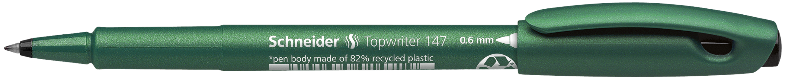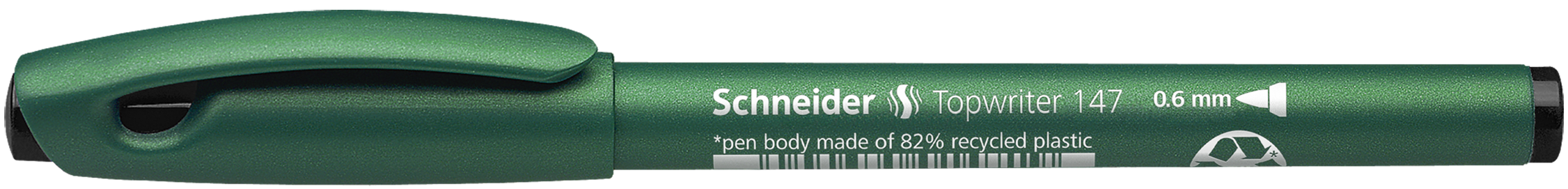 Fibrepen with hard fibre tip for comfortable and striking writing, approx. 0.6 mm. Writing colour black. The cap-off ink does not run dry even if the cap is removed for 2-3 days. Eco-friendly and resource-saving *pen body made of 82 % recycled plastic. The barrel parts are made from anti-evaporation PP for long-term shelf-life.