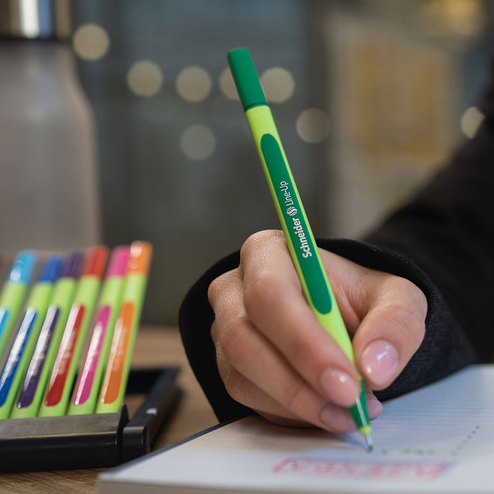 The first fineliner with a barrel of 88% bio-based plastic. Awarded with the world's best-known eco-label \"Blue Angel\" for particularly resource-saving and environmentally friendly production. Ink colour pastel-mint, line width ca. 0,4 mm. With its wide range of colours and its slim design it is a perfect companion for putting drawing and writing in the spotlight. The cap-off ink does not run dry even if the cap is removed for 2-3 days. Relaxed writing is ensured with the rubberised, ergonomic triangular barrel.