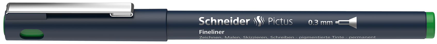 Technical illustrations or simply for sketching and writing at home or at school, the new fineliner Pictus qualifies for all these applications. Its water based, pigmented ink guarantees long lasting bright colours and an excellent resistance to fading. The ink is waterproof according to ink standard ISO 14145-2. Its metal encased writing tip stands for durability and precise layouts. With its 8 line widths and 4 colours Pictus is the ideal writing instrument for drawing, sketching, illustrating and writing as well as for working with rulers and stencils. At Schneider sustainability is one of the main priorities thus the pen body of the fineliner Pictus is made of at least 82% recycled plastics. Pictus, a real all-rounder.