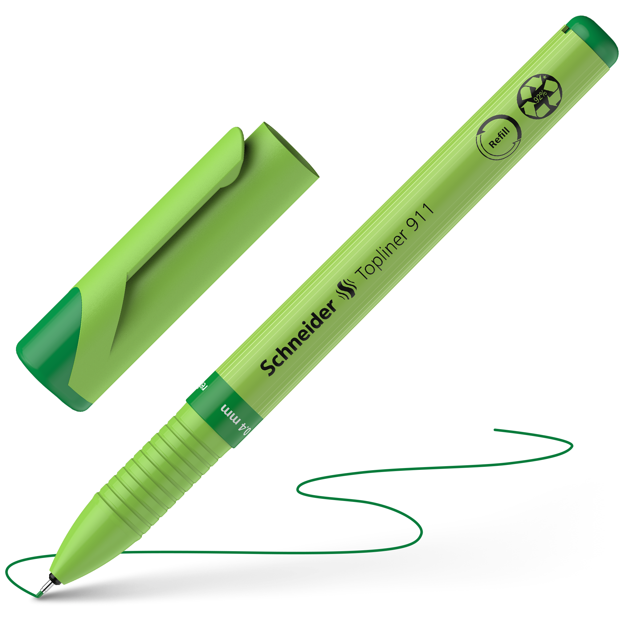 · Fineliner with European size Topliner 970 refill, writing colour green