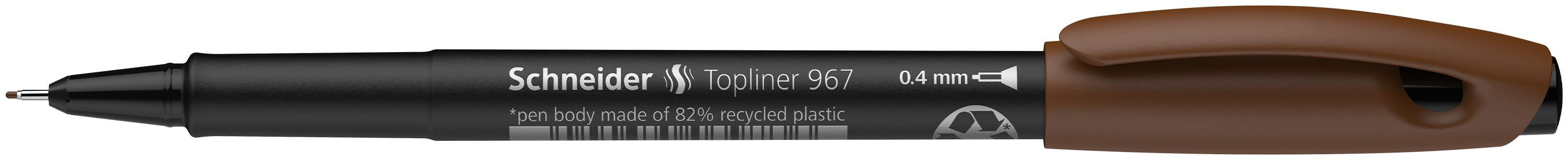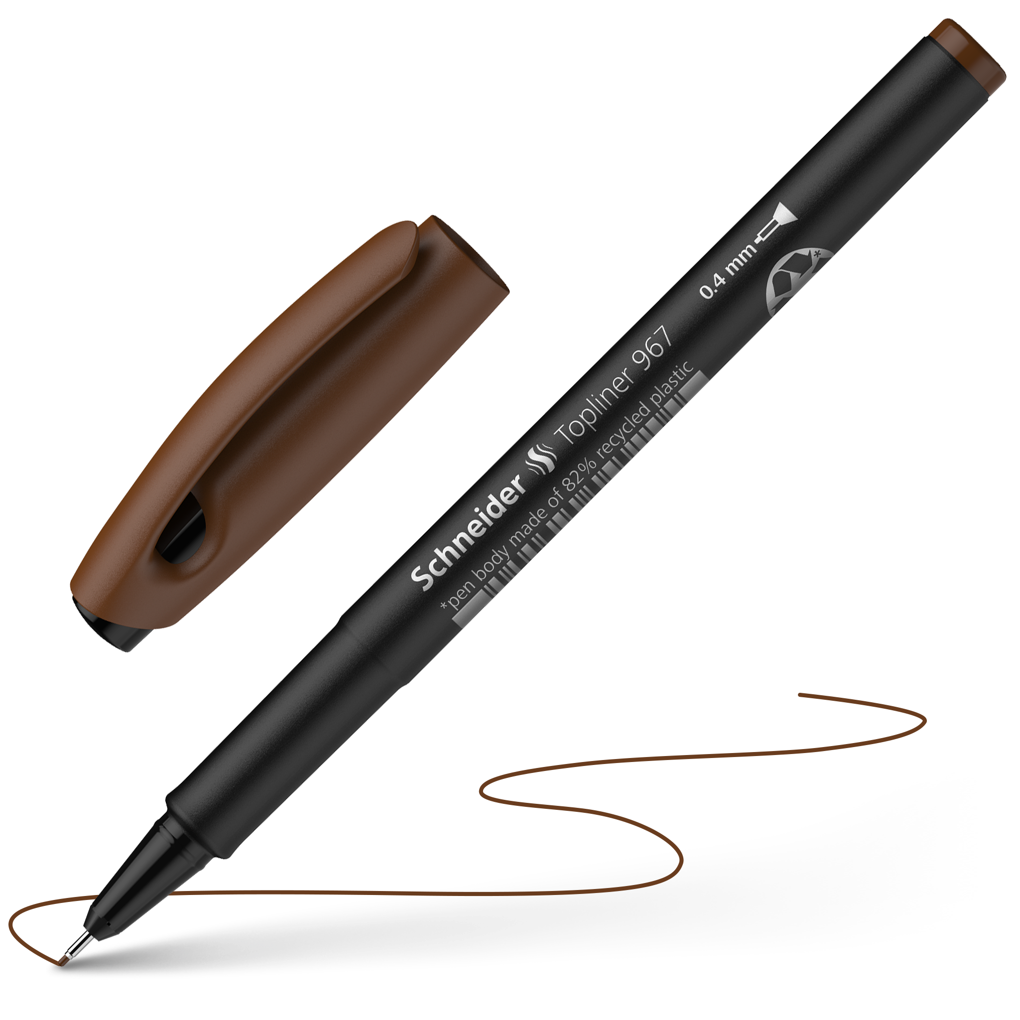 Fineliner with metal-encased writing tip for fine and exact results, approx. 0.4 mm. Writing colour brown. Eco-friendly and resource-saving pen body made of 82% recycled plastic. Wide variety of uses for school, hobbies and work - even enables you to work with a ruler and template. The cap-off ink does not run dry even if the cap is removed for 2-3 days. The barrel parts are made from anti-evaporation PP for long-term shelf-life.