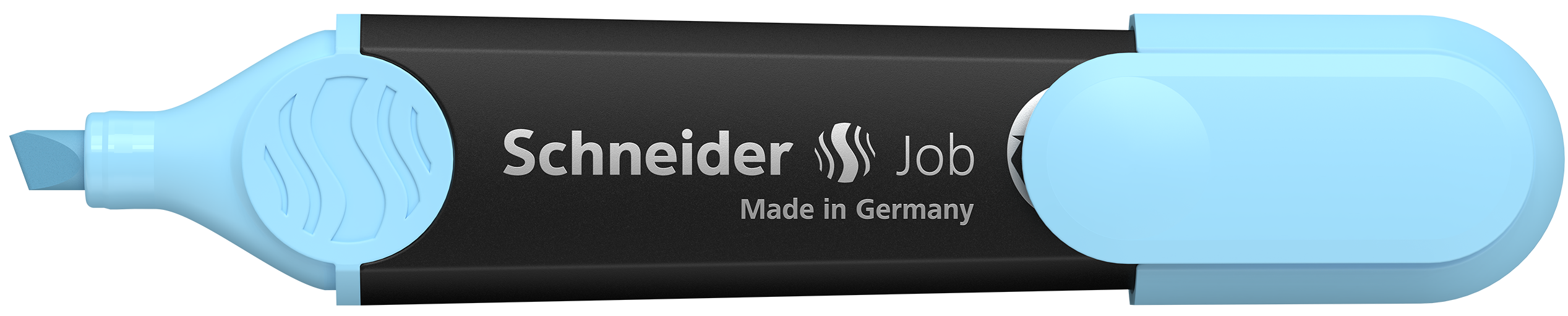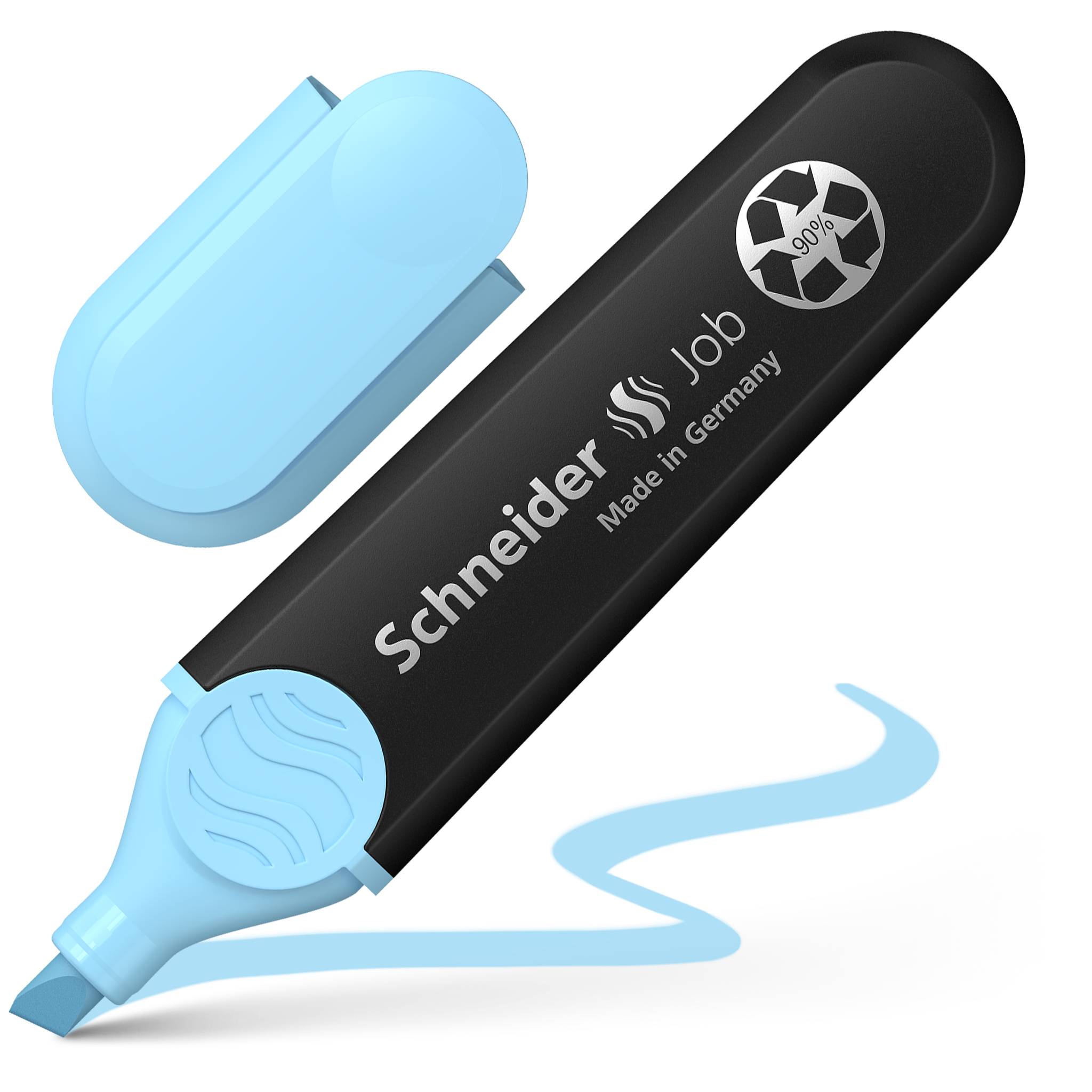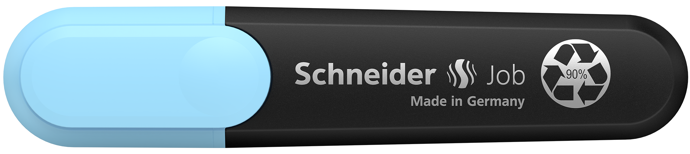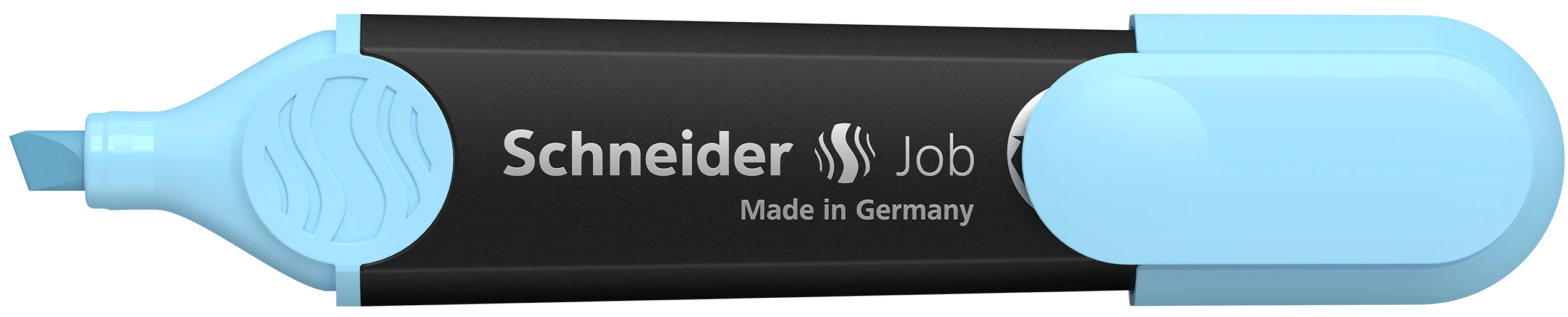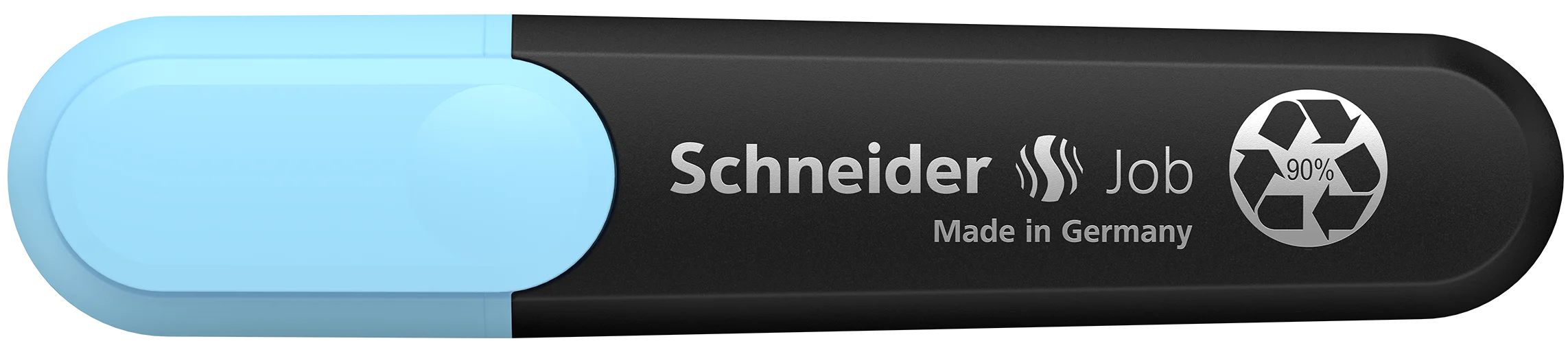 Highlighter with chisel tip for two line widths, 1 + 5 mm. Marking colour sky blue. The Job highlighter is the first highlighter made from over 90% recycled material to be awarded the famous eco-label “Blue Angel”. The housing, as well as the internal ink reservoir and the tip are made of recycled plastic. The universal ink presents maximum brilliance and good lightfastness on normal, copying, and fax paper. This makes the Job highlighter ideal for school, university or office and, with its chisel tip, it is also perfect for creative work in the bullet journal or for calligraphy in hand lettering. With its large ink reservoir, the Job pen can highlight over 15,000 words.
