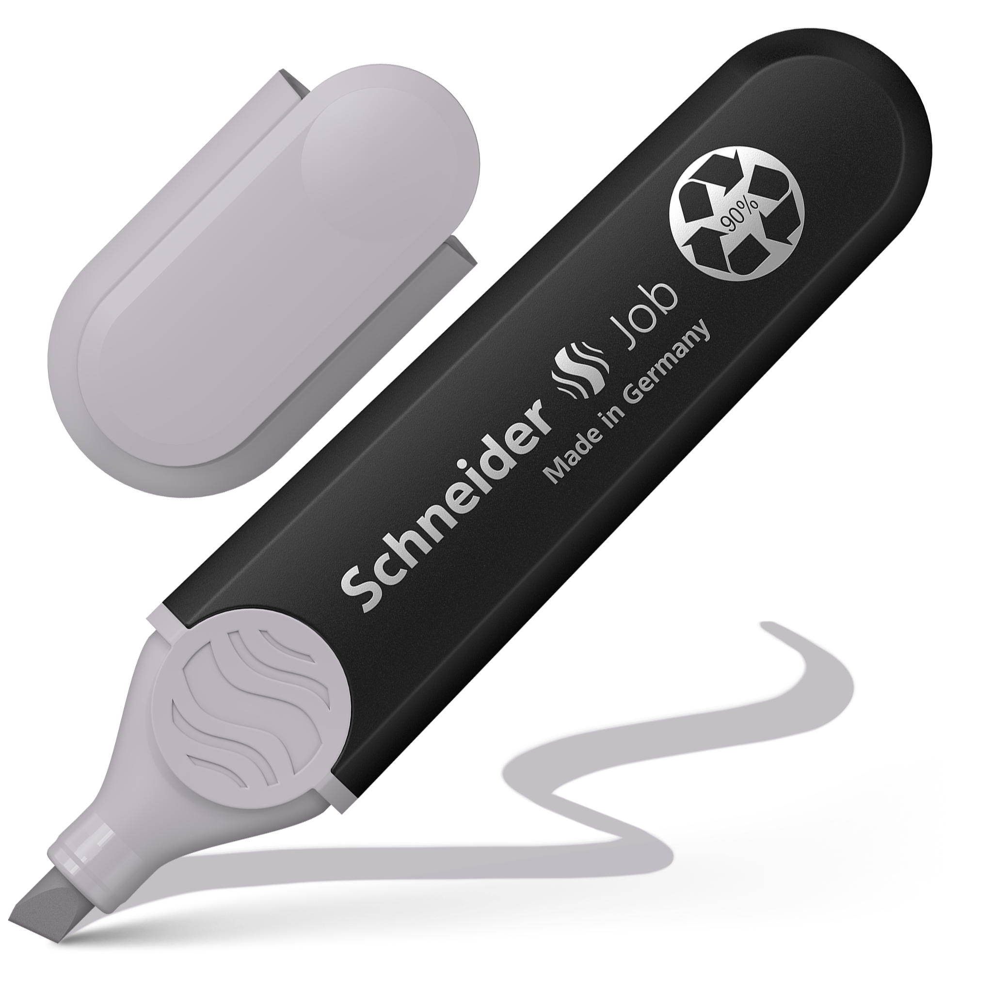 Highlighter with chisel tip for two line widths, 1 + 5 mm. Marking colour taupe grey. The Job highlighter is the first highlighter made from over 90% recycled material to be awarded the famous eco-label “Blue Angel”. The housing, as well as the internal ink reservoir and the tip are made of recycled plastic. The universal ink presents maximum brilliance and good lightfastness on normal, copying, and fax paper. This makes the Job highlighter ideal for school, university or office and, with its chisel tip, it is also perfect for creative work in the bullet journal or for calligraphy in hand lettering. With its large ink reservoir, the Job pen can highlight over 15,000 words.