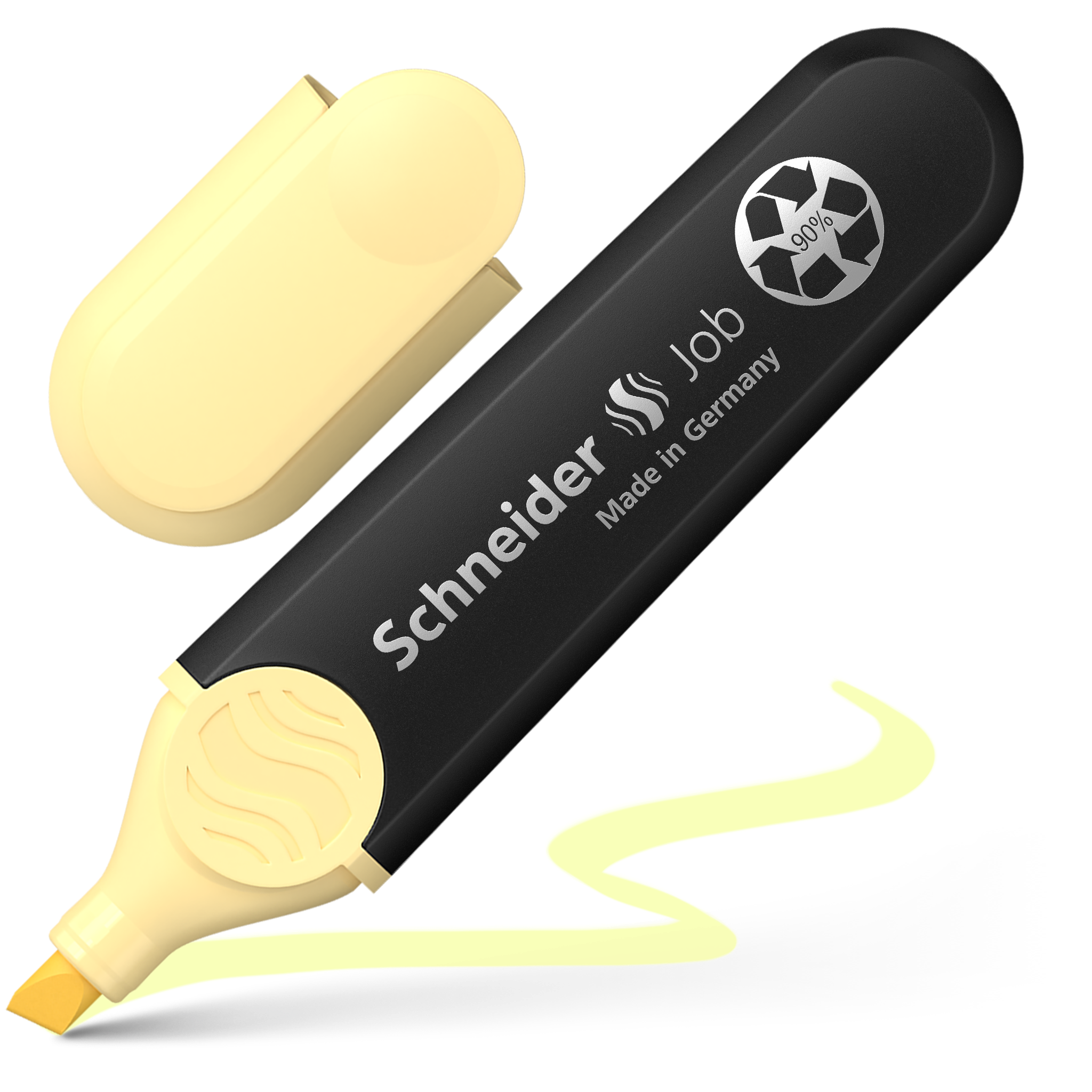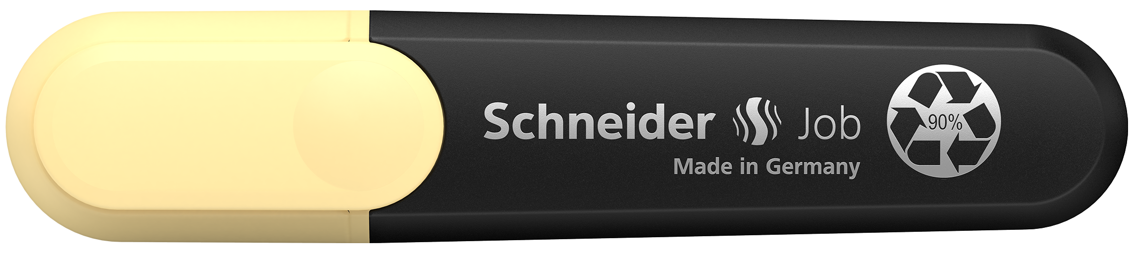 Highlighter with chisel tip for two line widths, 1 + 5 mm. Marking colour vanilla. The Job highlighter is the first highlighter made from over 90% recycled material to be awarded the famous eco-label “Blue Angel”. The housing, as well as the internal ink reservoir and the tip are made of recycled plastic. The universal ink presents maximum brilliance and good lightfastness on normal, copying, and fax paper. This makes the Job highlighter ideal for school, university or office and, with its chisel tip, it is also perfect for creative work in the bullet journal or for calligraphy in hand lettering. With its large ink reservoir, the Job pen can highlight over 15,000 words.