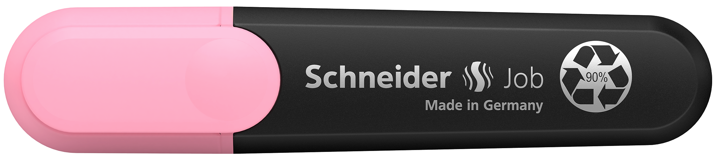 Highlighter with chisel tip for two line widths, 1 + 5 mm. Marking colour pastel pink. The Job highlighter is the first highlighter made from over 90% recycled material to be awarded the famous eco-label “Blue Angel”. The housing, as well as the internal ink reservoir and the tip are made of recycled plastic. The universal ink presents maximum brilliance and good lightfastness on normal, copying, and fax paper. This makes the Job highlighter ideal for school, university or office and, with its chisel tip, it is also perfect for creative work in the bullet journal or for calligraphy in hand lettering. With its large ink reservoir, the Job pen can highlight over 15,000 words.