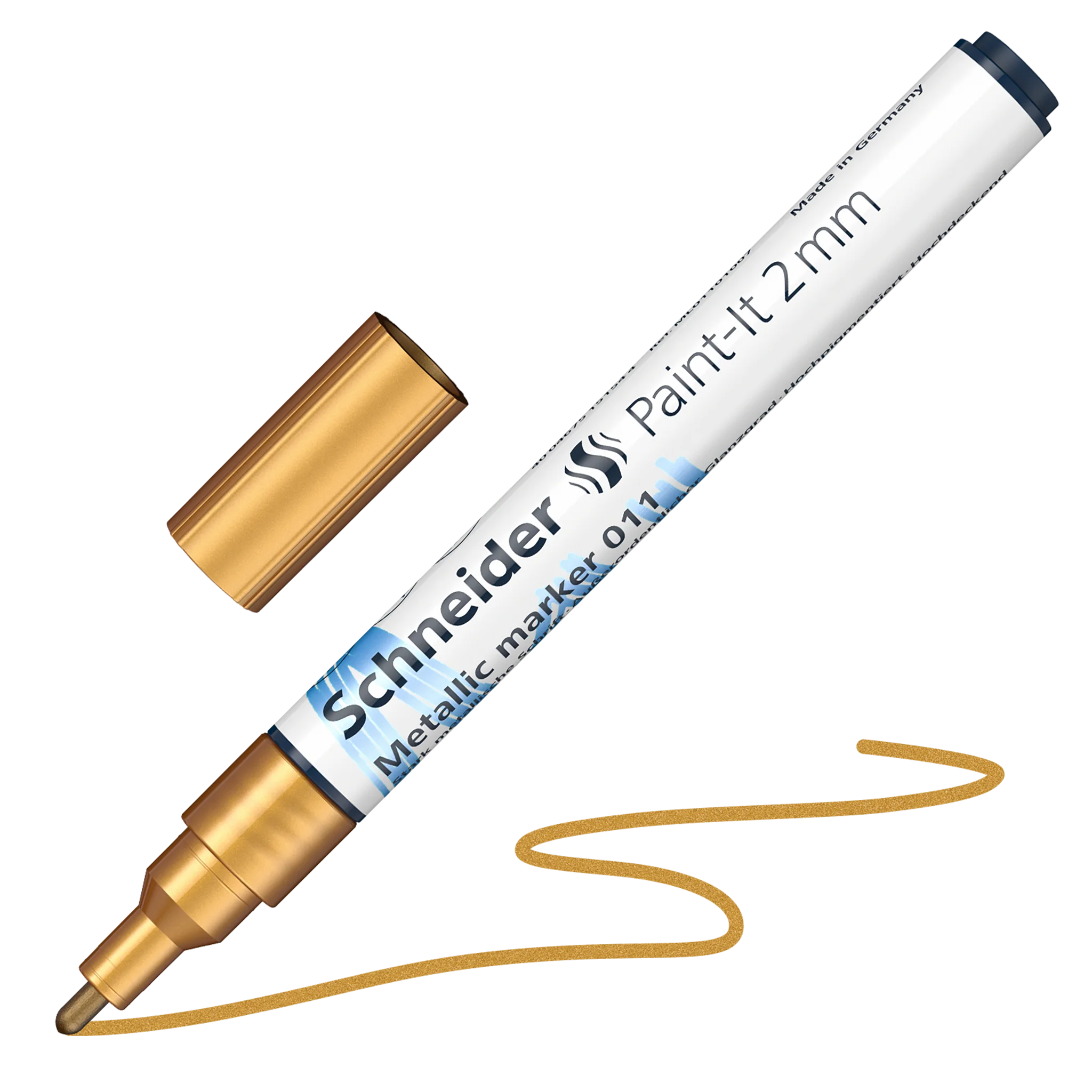 Metallic marker for extraordinary effects. Gives every project a special appearance. Fine line width approx. 2.0 mm. Ink colour silver metallic gold metallic copper metallic violet metallic. New pigment technology enables a clean and homogeneous colour application. The aluminium flakes coated with colour pigments produce a highly metallic effect with an exceptionally high gloss level, even in different incidences of light. Suitable for many surfaces. Best results on dark and non-absorbent surfaces. Fast-drying ink perfectly controlled by a valve.