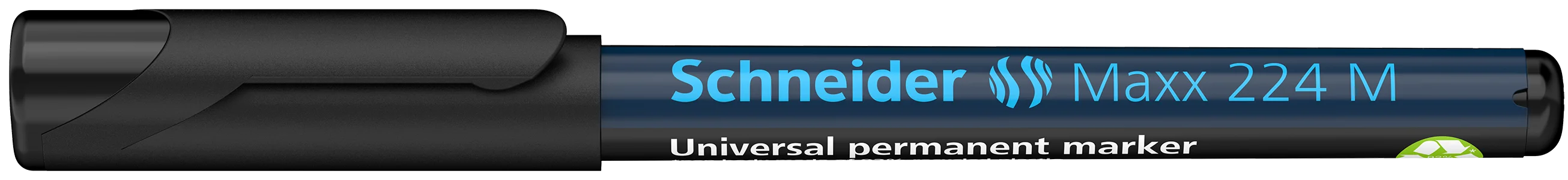 Permanent universal marker, writing colour black, medium line width (M) approx. 1.0 mm. For writing on transparencies (OHP), paper, plastic, glass, metal and almost all other materials. Eco-friendly and resource-saving *pen body made of 92% recycled plastic. The marker's vibrantly coloured ink is quick-drying, water-proof and highly light resistant. The cap-off ink does not run dry even if the cap is removed for 2-3 days. It has a low odour and is free of toluol and xylol. Slim pocket model with practical clip cap. The ink can be refilled using Maxx 645 refill station.