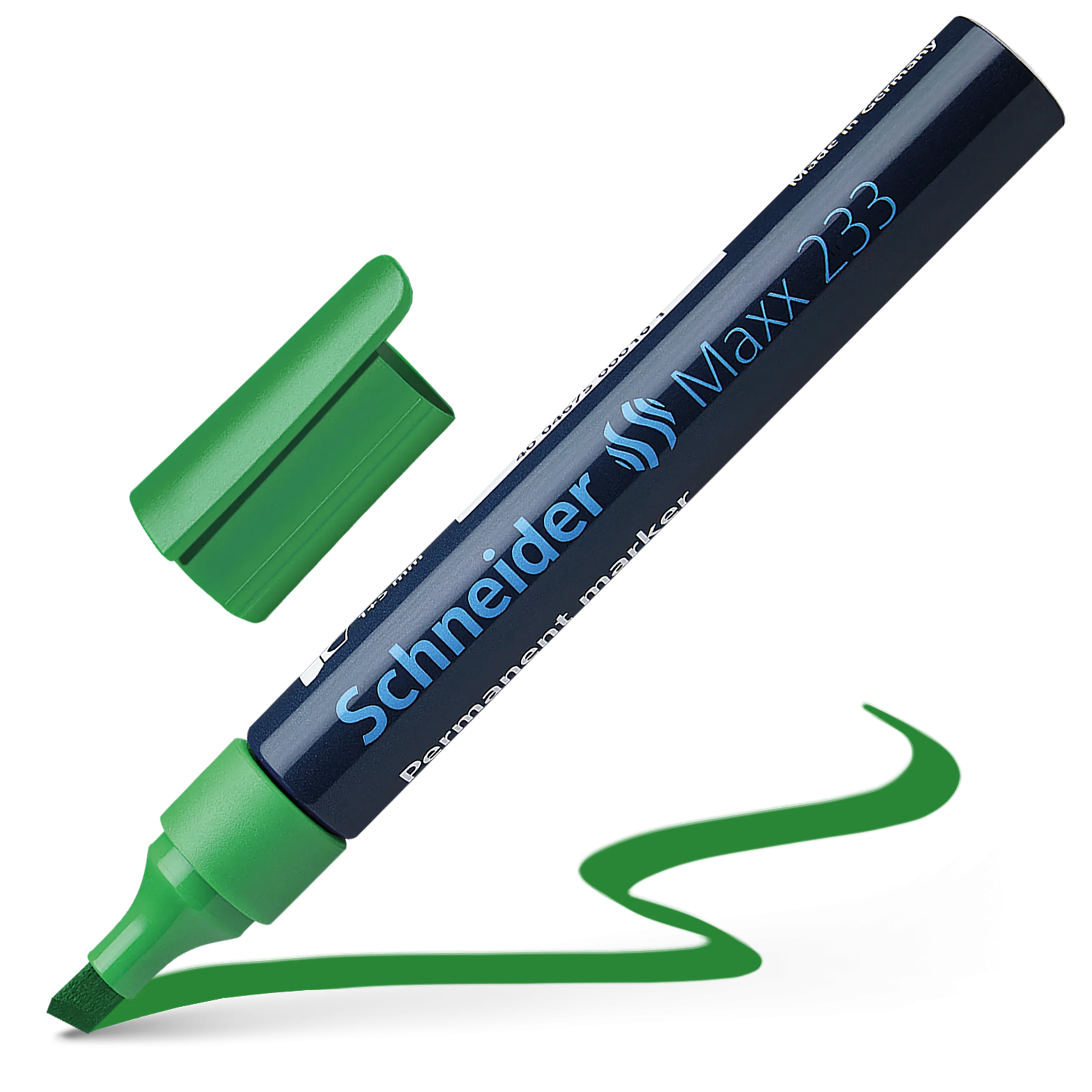 · Permanent marker with aluminium barrel, writing colour green· Chisel tip, line widths 1+5 mm