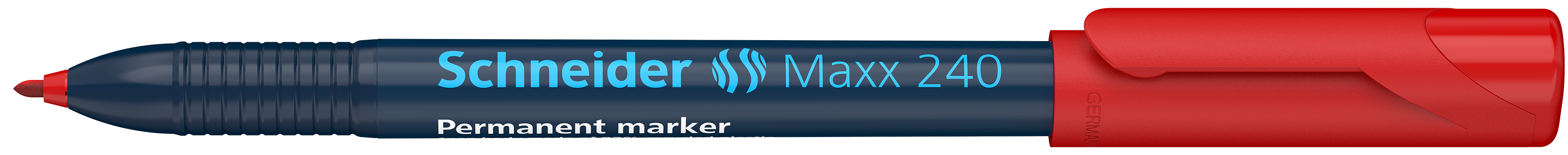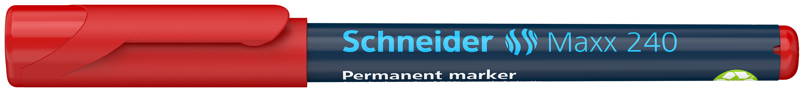 Permanent marker with round tip, line width 1-2 mm. Writing colour red. For writing on cardboard, paper, plastic, glass, metal, wood and almost all other materials. The writing is quick-drying, water-proof and highly light resistant. The cap-off ink does not run dry even if the cap is removed for 2-3 days. It has a low odour and is free of toluol and xylol. Slim pocket model with practical clip cap.