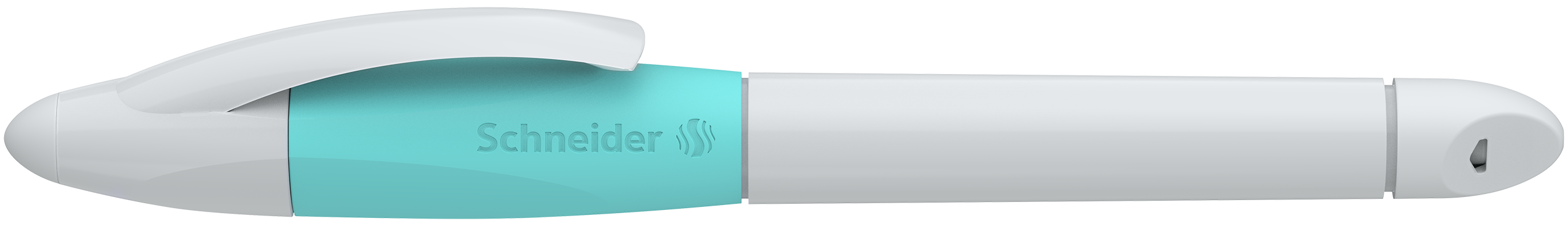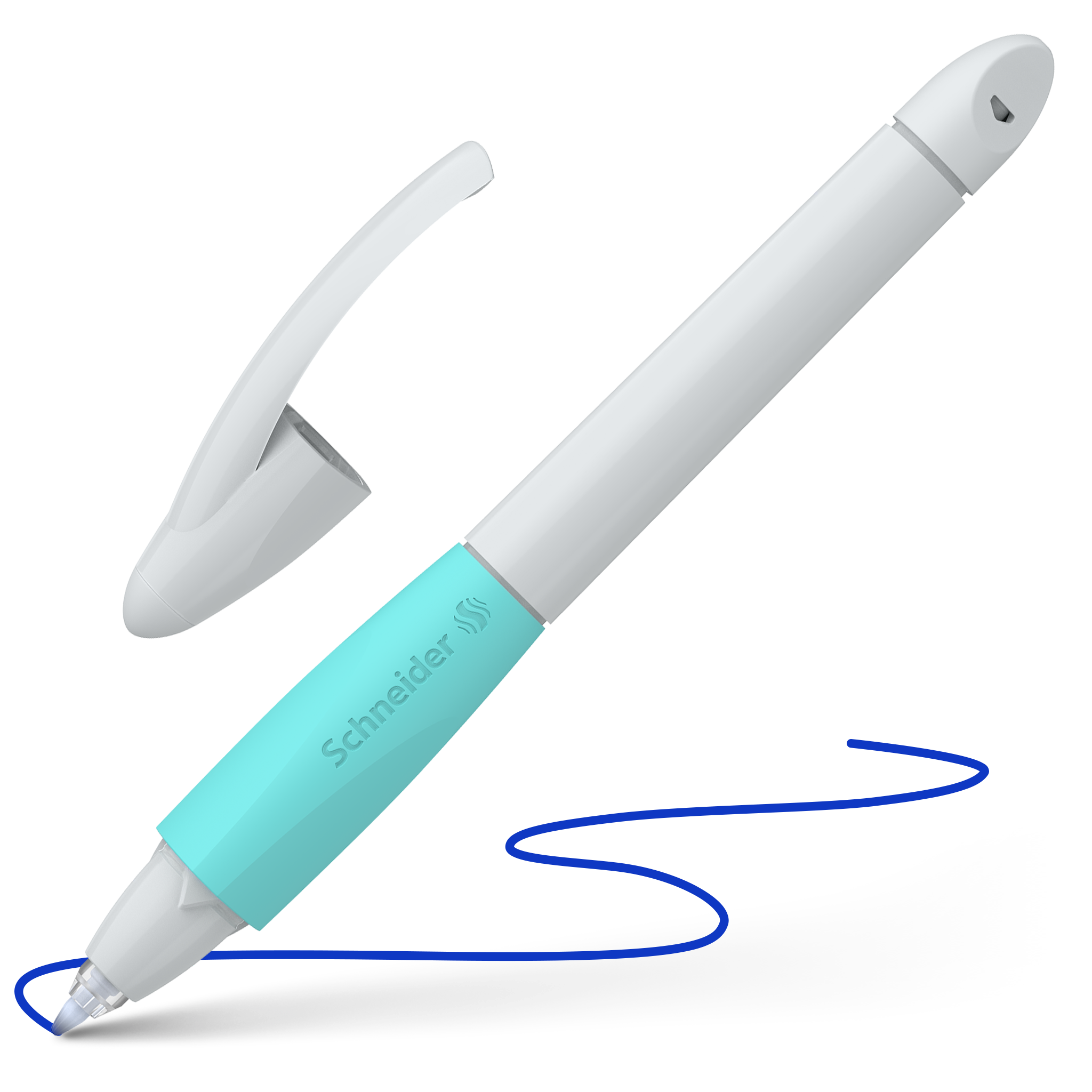 Base Ball in colour “light grey-turquoise\" is a rollerball ideal for beginners in primary school and perfect as a supplement or alternative to the fountain pen. The ergonomically shaped and non-slip rubberised grip ensures fatigue-free writing for beginners at school, while the large finger areas prevent pressure points. With writing and spare cartridge 852 with ball tip, ink colour royal blue, erasable. Equipped with a sturdy plastic clip. Ink dries quickly and is smudge proof when highlighting. Equally suitable for right- and left-handers.
