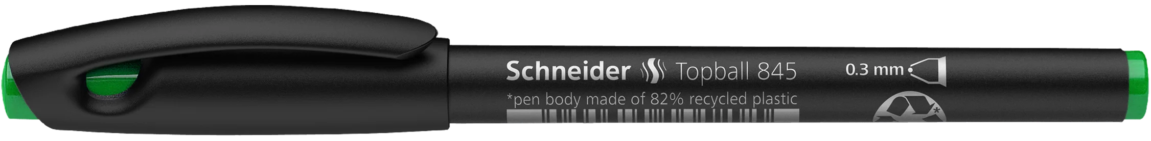 Rollerball for ultra-fine writing results. With conical tip made from wear-resistant stainless steel, line width approx. 0.3 mm, writing colour green. Eco-friendly and resource-saving *pen body made of 82% recycled plastic. The cap-off ink does not run dry even if the cap is removed for 2-3 days.