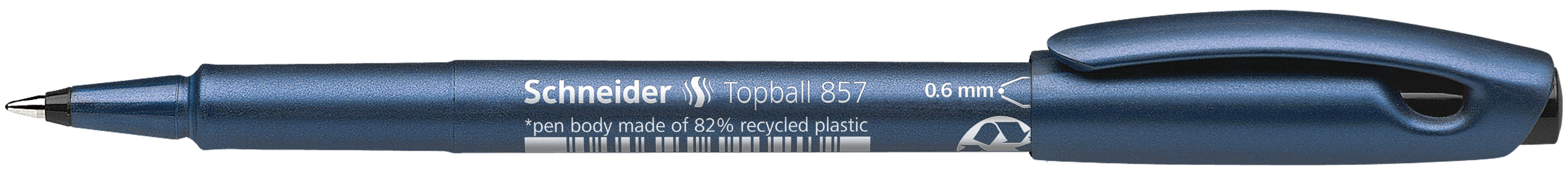 Rollerball with metal conical tip, line width approx. 0.6 mm. Writing colour black. Ideal for comfortable and striking writing. Eco-friendly and resource-saving *pen body made of 82% recycled plastic. The cap-off ink does not run dry even if the cap is removed for 2-3 days.