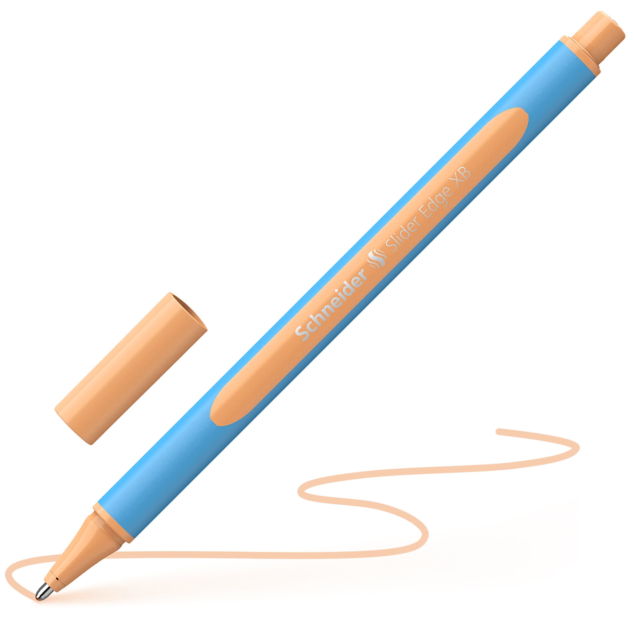 Ballpoint pen with Viscoglide® technology for extraordinarily smooth and gliding writing. Eco-friendly and resource-saving *pen body made of 83 % recycled plastic. Writing colour peach. Extra Braod line width (XB). The ink dries quickly - even on smooth paper - and is smudge proof when highlighting it later on. Ideally suited to drawing and painting projects because the special ink will not run even on absorbent paper. A generously rubberised three-sided barrel is designed for relaxed writing without hand fatigue. It does not roll on the desk and its slim shape fits perfectly into school children's pencil cases or into desk pen drawers. The cap fits neatly on either end of pen. The wear-resistant stainless steel tip guarantees that the large ink supply can be fully used and does not smear.