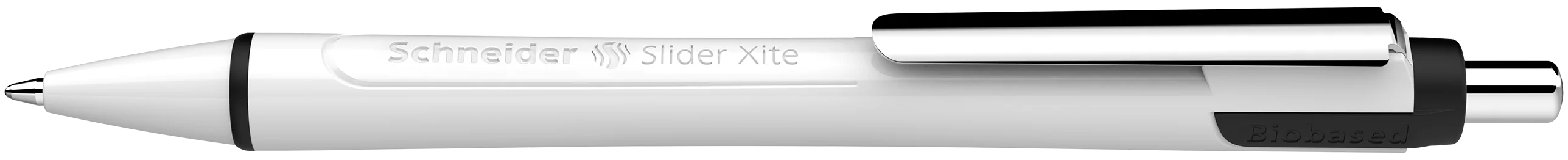 Ballpoint pen with pen body made ;from >95% biobased plastics. Viscoglide® technology for extraordinarily smooth and gliding writing. Slider Xite is equipped with a replaceable metal refill Slider 710 XB with wear-resistant stainless steel tip. This guarantees that the large ink supply can be fully used and does not smear. Ink dries quickly - even on smooth paper - and is smudge proof when highlighting it later on. Writing colour black. Waterproof according to ink standard ISO 12757-2. The ink colour is recognisable at the push button. The slightly concave-shaped barrel promotes tireless and relaxed writing. It has a sturdy metal clip and, thanks to the clever Plug+Play system, can use a variety of refill formats.