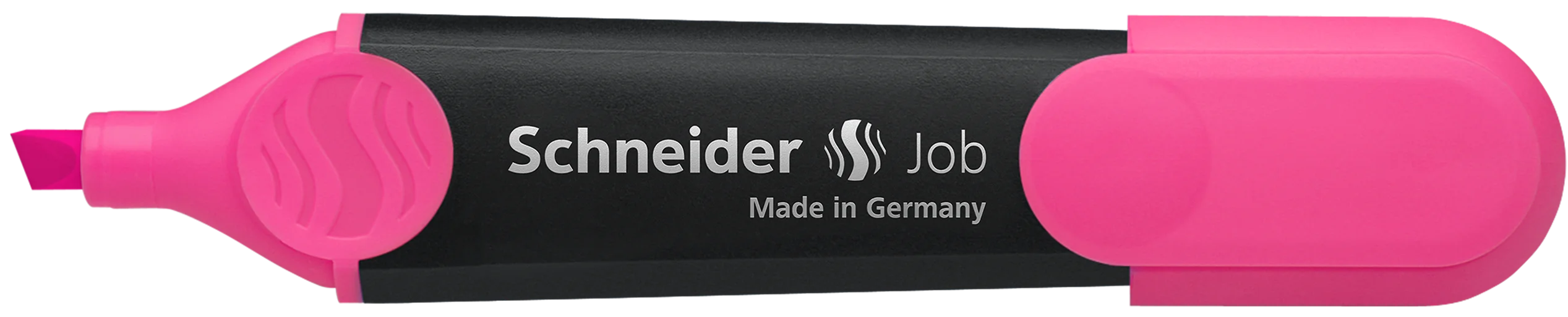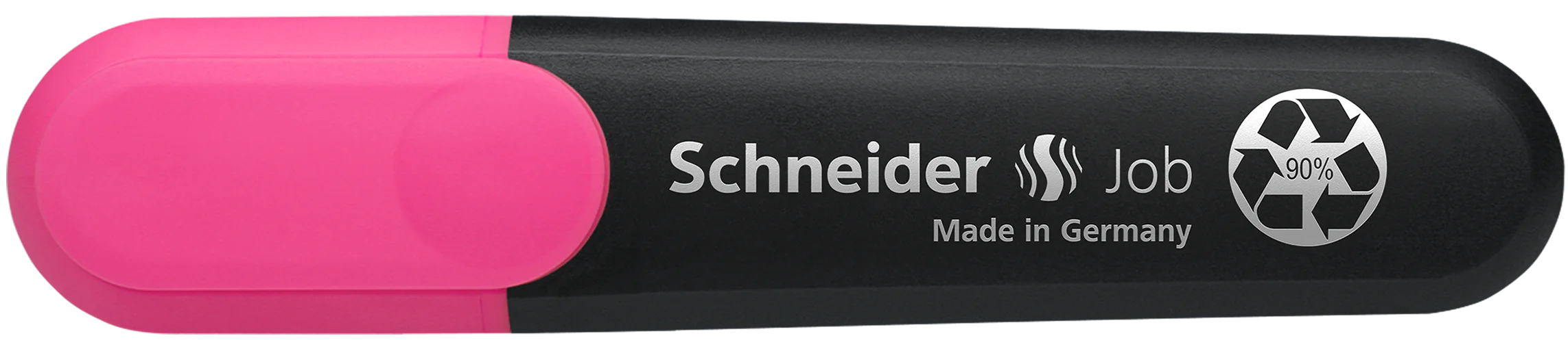 Highlighter with chisel tip for two line widths, 1 + 5 mm. Marking colour pink. The Job highlighter is the first highlighter made from over 90% recycled material to be awarded the famous eco-label “Blue Angel”. The housing, as well as the internal ink reservoir and the tip are made of recycled plastic. The universal ink presents maximum brilliance and good lightfastness on normal, copying, and fax paper. This makes the Job highlighter ideal for school, university or office and, with its chisel tip, it is also perfect for creative work in the bullet journal or for calligraphy in hand lettering. It is refillable with the Maxx 660 refill station. With its large ink reservoir, the Job pen can highlight over 15,000 words.