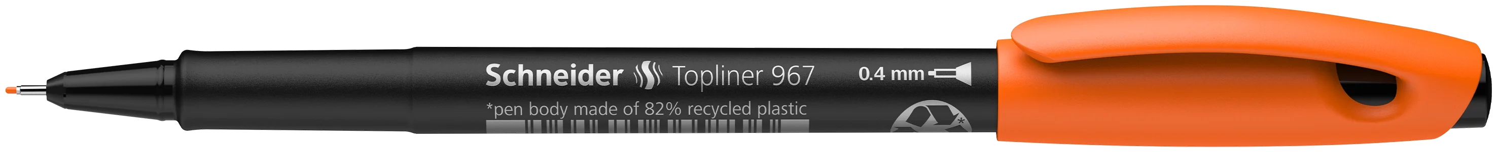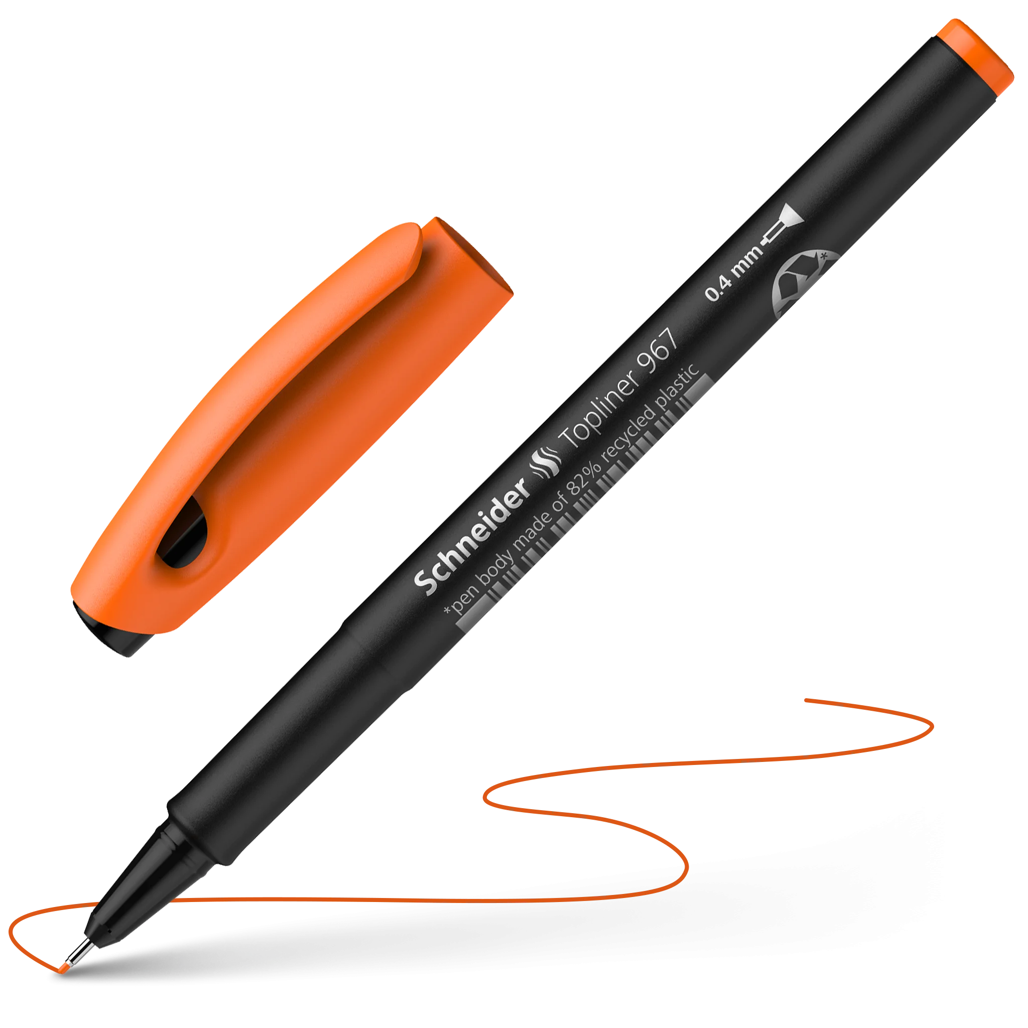 Fineliner with metal-encased writing tip for fine and exact results, approx. 0.4 mm. Writing colour orange. Eco-friendly and resource-saving pen body made of 82% recycled plastic. Wide variety of uses for school, hobbies and work - even enables you to work with a ruler and template. The cap-off ink does not run dry even if the cap is removed for 2-3 days. The barrel parts are made from anti-evaporation PP for long-term shelf-life.