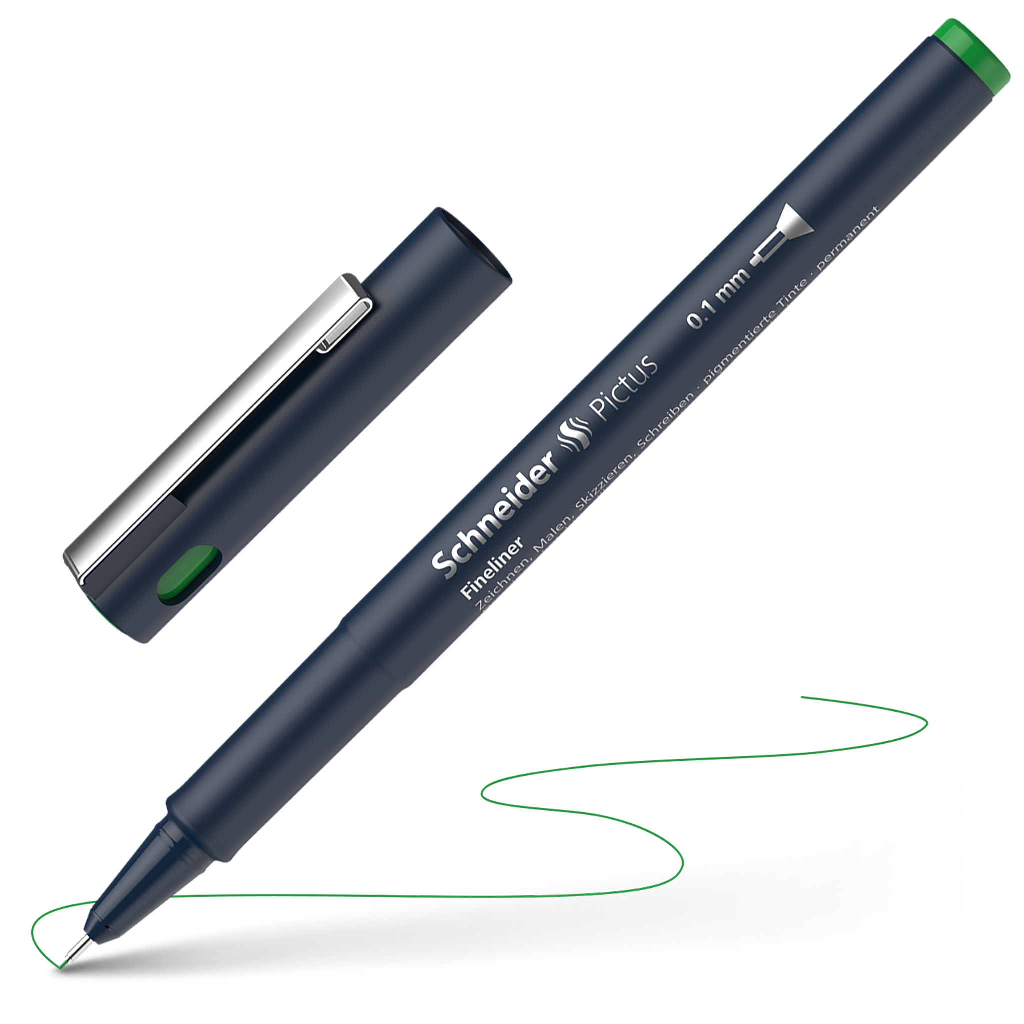 Technical illustrations or simply for sketching and writing at home or at school, the new fineliner Pictus qualifies for all these applications. Its water based, pigmented ink guarantees long lasting bright colours and an excellent resistance to fading. The ink is waterproof according to ink standard ISO 14145-2. Its metal encased writing tip stands for durability and precise layouts. With its 8 line widths and 4 colours Pictus is the ideal writing instrument for drawing, sketching, illustrating and writing as well as for working with rulers and stencils. At Schneider sustainability is one of the main priorities thus the pen body of the fineliner Pictus is made of at least 82% recycled plastics. Pictus, a real all-rounder.