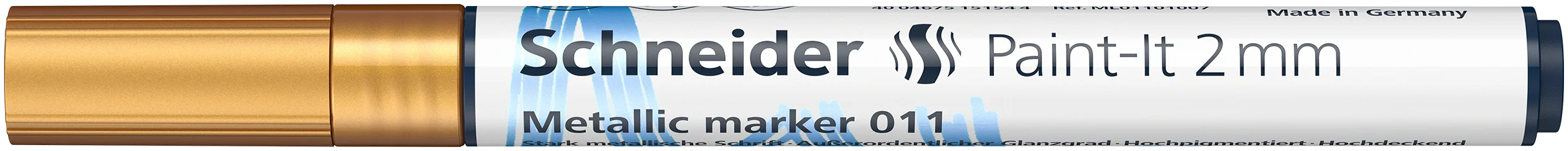 Metallic marker for extraordinary effects. Gives every project a special appearance. Fine line width approx. 2.0 mm. Ink colour silver metallic gold metallic copper metallic violet metallic. New pigment technology enables a clean and homogeneous colour application. The aluminium flakes coated with colour pigments produce a highly metallic effect with an exceptionally high gloss level, even in different incidences of light. Suitable for many surfaces. Best results on dark and non-absorbent surfaces. Fast-drying ink perfectly controlled by a valve.