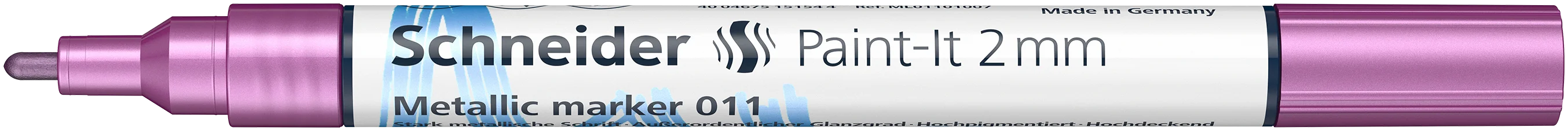 Metallic marker for extraordinary effects. Gives every project a special appearance. Fine line width approx. 2.0 mm. Ink colour silver metallic gold metallic copper metallic violet metallic. New pigment technology enables a clean and homogeneous colour application. The aluminium flakes coated with colour pigments produce a highly metallic effect with an exceptionally high gloss level, even in different incidences of light. Suitable for many surfaces. Best results on dark and non-absorbent surfaces. Fast-drying ink perfectly controlled by a valve.