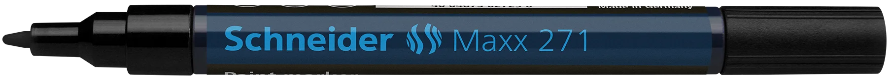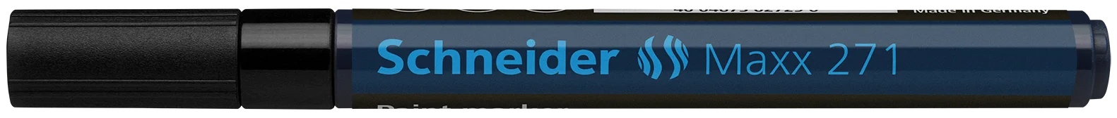 Paint marker with bullet tip for a medium line width of 1-2 mm. Writing colour black. Ideal for marking and decorating rough and smooth surfaces, e.g. paper, plastic, glass, ceramics, metal, leather, rubber, etc. The marks made are highly opaque, have very good adhesion and abrasion resistance on almost all materials, are lightfast, water and weatherproof, resistant to many etching and washing procedures, as well as heat-resistant to up to 300 °C. The ink is controlled by a valve and is free of toluol and xylol. Replaceable writing tip.
