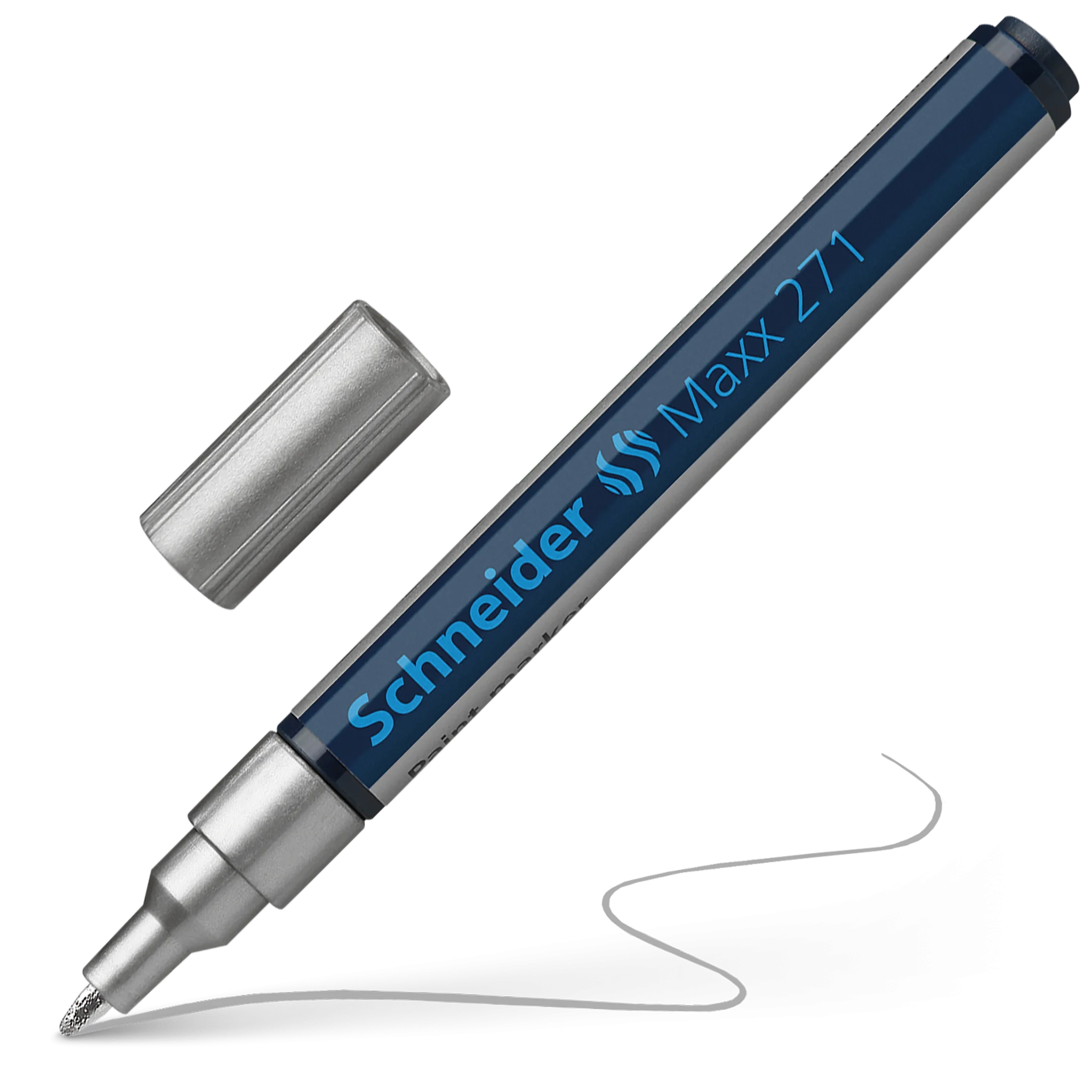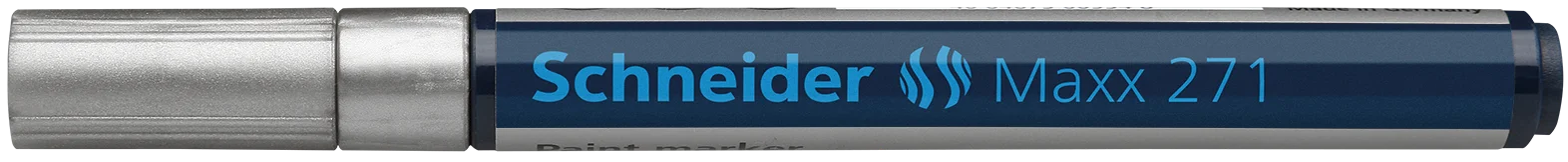 Paint marker with bullet tip for a medium line width of 1-2 mm. Writing colour silver. Ideal for marking and decorating rough and smooth surfaces, e.g. paper, plastic, glass, ceramics, metal, leather, rubber, etc. The marks made are highly opaque, have very good adhesion and abrasion resistance on almost all materials, are lightfast, water and weatherproof, resistant to many etching and washing procedures, as well as heat-resistant to up to 300 °C. The ink is controlled by a valve and is free of toluol and xylol. Replaceable writing tip.