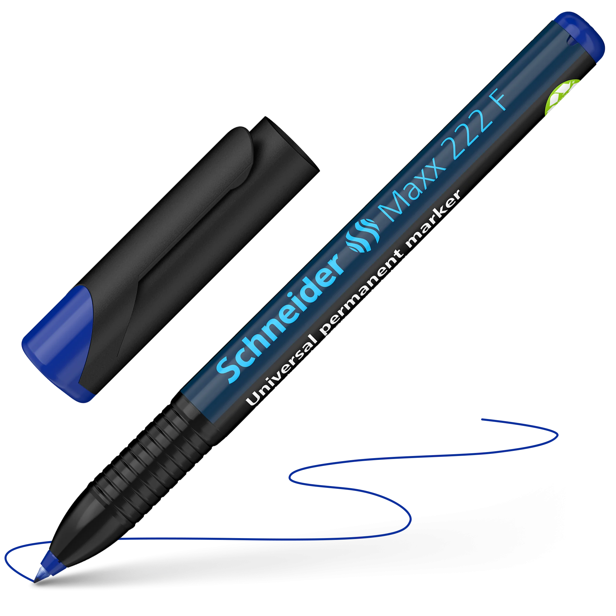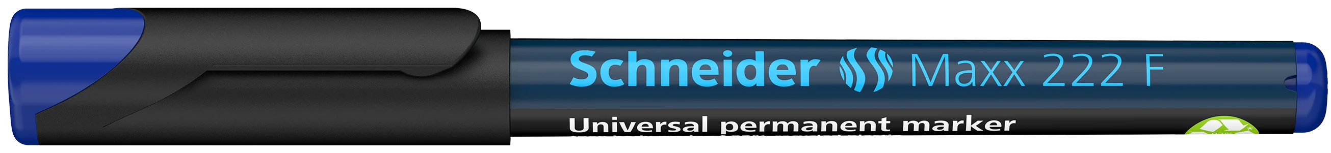 Permanent universal marker, fine line width (F) approx. 0.7 mm. Writing colour blue. For writing on transparencies (OHP), paper, plastic, glass, metal and almost all other materials. The marker's vibrantly coloured ink is quick-drying, water-proof and highly light resistant. The cap-off ink does not run dry even if the cap is removed for 2-3 days. It has a low odour and is free of toluol and xylol. Slim pocket model with practical clip cap. Eco-friendly and resource-saving *pen body made of 92% recycled plastic.