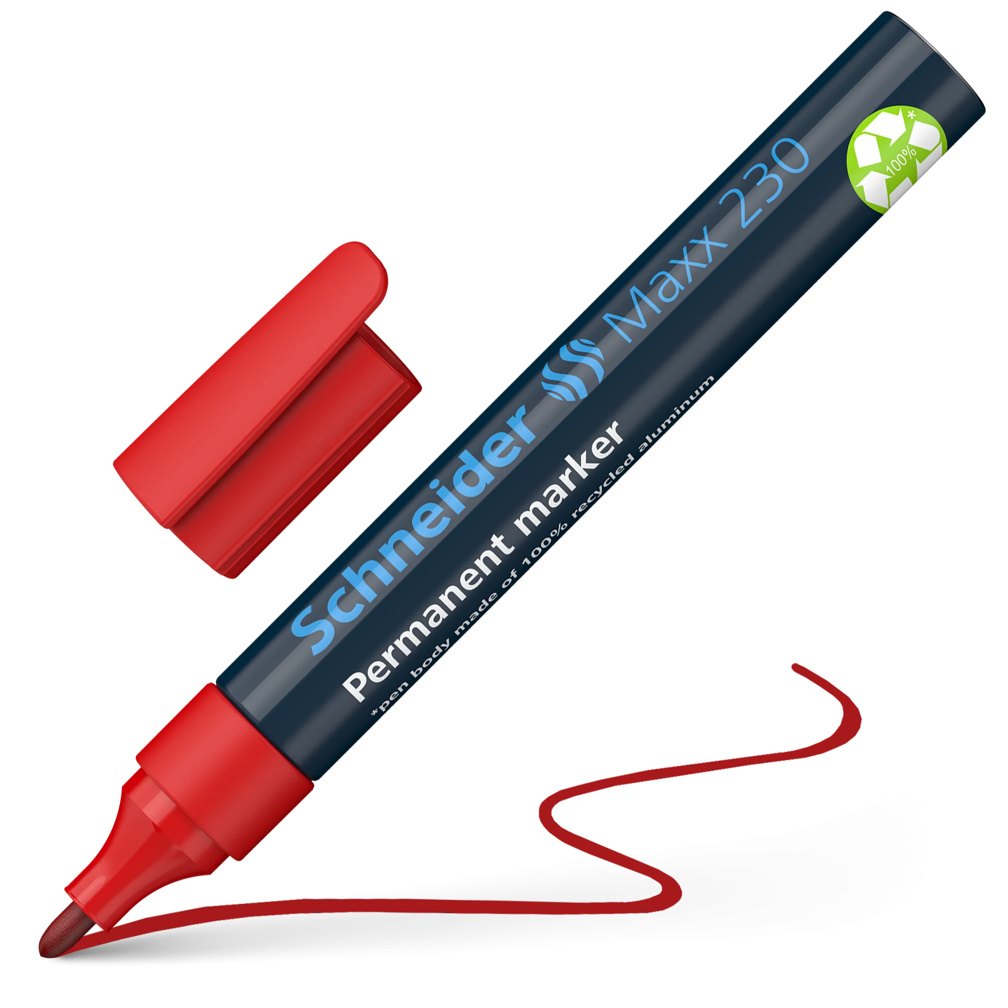· Permanent marker with aluminium barrel, writing colour red· Bullet tip, line width 1-3 mm